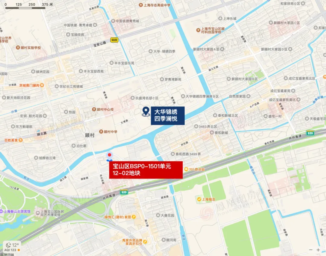 地块紧邻S20外环高速,周边有泰和新城小学、顾村中学等教育资源,但距离现有轨道交通站点稍远。值得关注的是,地块北侧即是大华集团打造的超大型社区大华锦绣四季项目,此前开盘均价约5万元/平方米。
