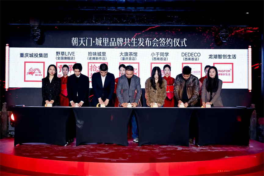 首批重点签约品牌代表——大旗茶馆重庆首店、DEDECO西南首店、野草LIVE全国旗舰店、小于同学西南首店、拾味城里老牌新作店正式与项目完成签约。这些品牌将在此落地城市限定门店,为项目注入首店经济与特色业态的强劲动能。其中,备受关注的“大旗茶馆”重庆首店入驻,将成为传承川渝茶文化、展现城市慢生活美学的重要窗口。