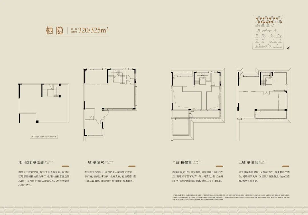 地面一层:拥有独立耳房设计,可打造老人房或独立茶室,一步门庭;奢阔会客空间,礼遇贵宾,更显尊崇,南向超10m面宽,开阔视野,游园赏景。悠然自得。