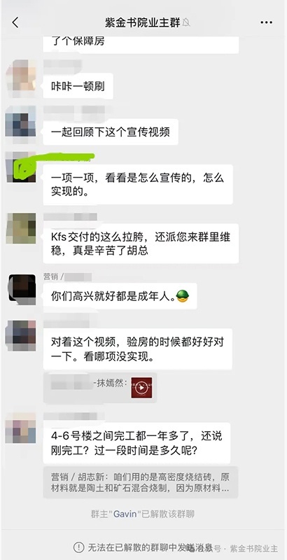 第三,当众多业主提出质疑后,开发商采取的解决措施:解散业主沟通群,拒绝提供问题整改的详细台账,更是在通知中单方面宣称“无论业主是否签收,均视为已完成交付。