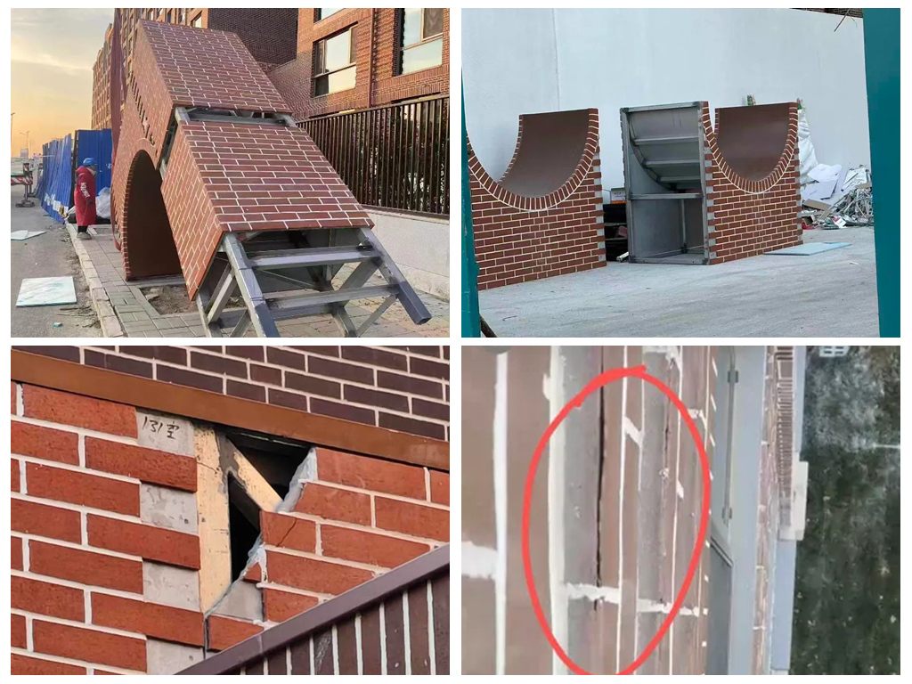 然而,实际交付环节中,不少业主发现,项目的大门和风雨连廊竟是“空心铁皮桁架贴仿砖皮”,还存在墙面开裂、儿童区油漆刺鼻易滑、甲醛严重超标、地下车库漏水等问题。