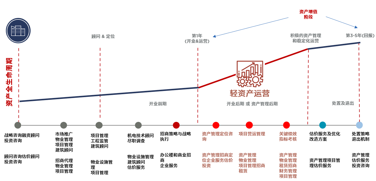 当前整体商业地产进入存量时代,供应过剩,市场竞争加剧;核心城市优质地块开发运营成本增高、风险加大;商业项目运营系统性要求高、过程复杂多变。因此,对于专业人才的需求较高,一般团队操盘能力难以匹配;专业公司经验丰富,能够覆盖商办地产全流程,部分企业需要调整方向,从开发赛道向轻资产赛道下沉。
