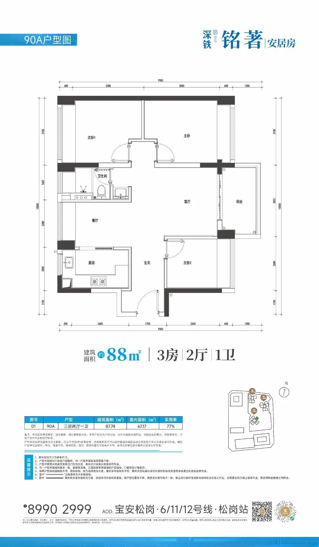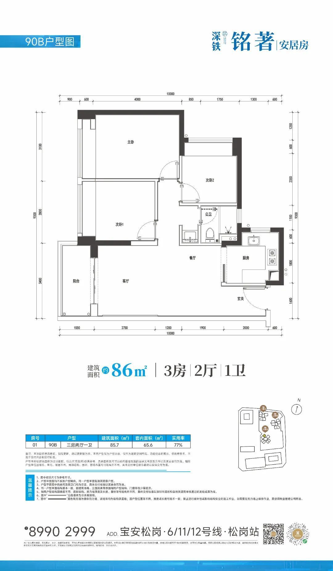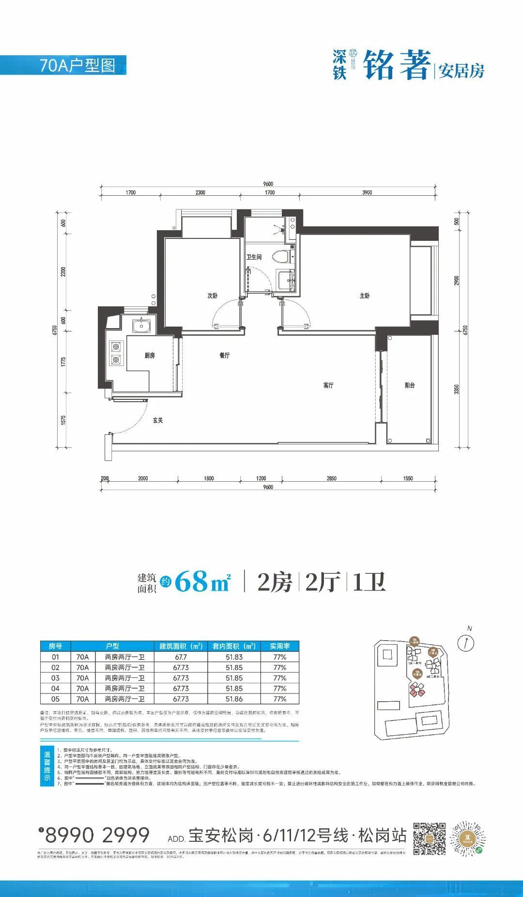 深铁铭著位于宝安松岗站,是深圳西部目前唯一的三地铁线换乘枢纽(6号线、11号线、12号线交汇)。项目占地约2.55万平米,总建筑面积约23.85万平米,容积率6.75,绿化率30%,物业类型涵盖住宅、办公、商业及学校。