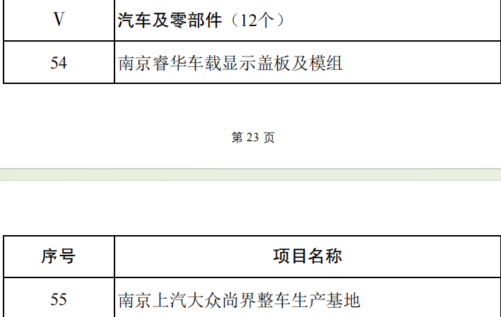 产业项目方面,包括南京昀光12寸超高清硅基OLED微显示器、南京全控仿真平台及运动控制器、南京华天集成电路先进封测、南京汇川智能机器人制造二期、南京国轩新型锂离子储能电池、南京金陵石化绿色转型升级、南京上汽大众尚界整车生产基地等项目。