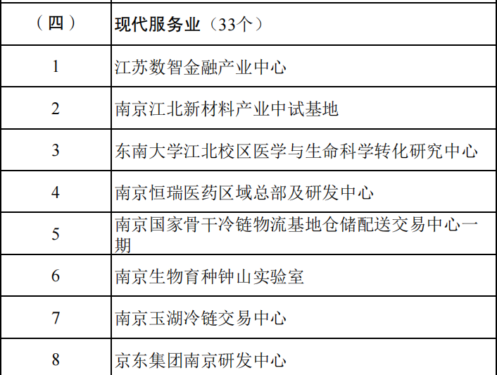 现代服务业,南京包括8大项目,其中京东集团南京研发中心在列。