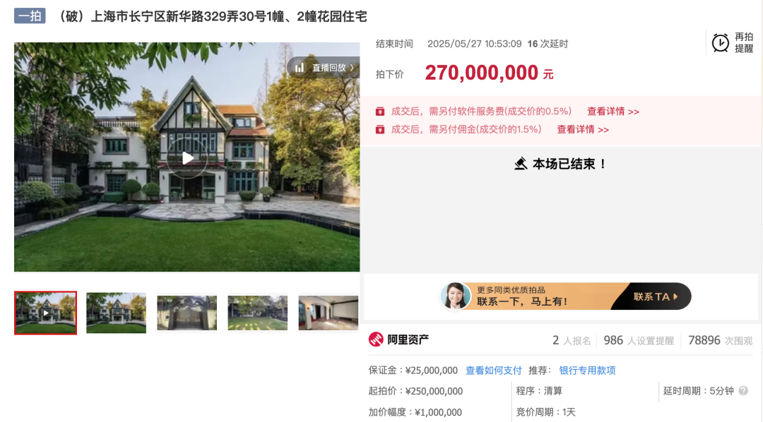 2025年5月27日,上海长宁区新华路329弄,一栋百年花园洋房在阿里法拍平台落槌。