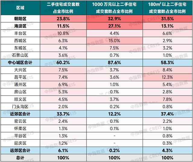 表:2025年北京二手住宅成交区域分布