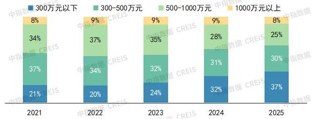 交易结构呈现明显的刚需及刚改特征。2025年,北京总价300万元以下的二手住宅成交占比达37%,较上年提升5个百分点。总价500万元以下的二手住宅合计成交占比接近七成,且主要集中于五环外区域。