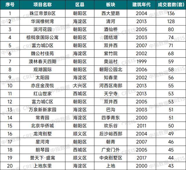 表:2025年北京总价1000万元以上二手房成交TOP20小区