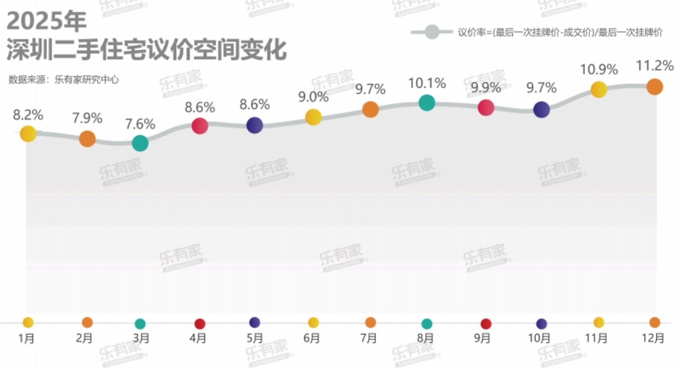 据乐有家统计数据显示,深圳二手住宅议价率从7月份后,维持在10%-11%的高位区间。