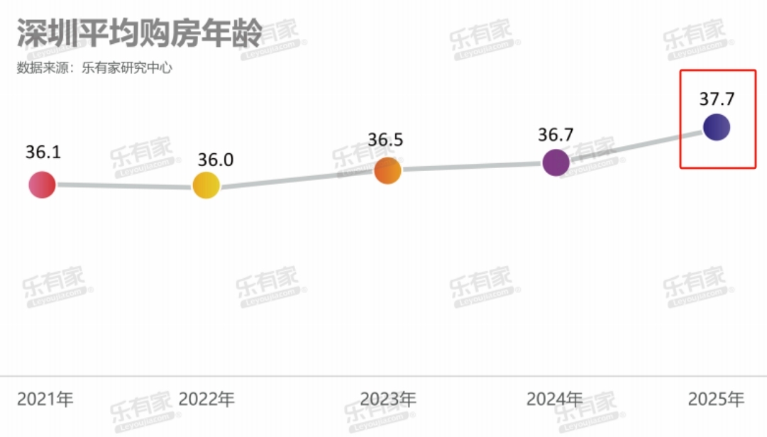 乐有家数据显示,2025年深圳平均购房年龄已来到37.7岁,相比2021年增加了1.6岁。
