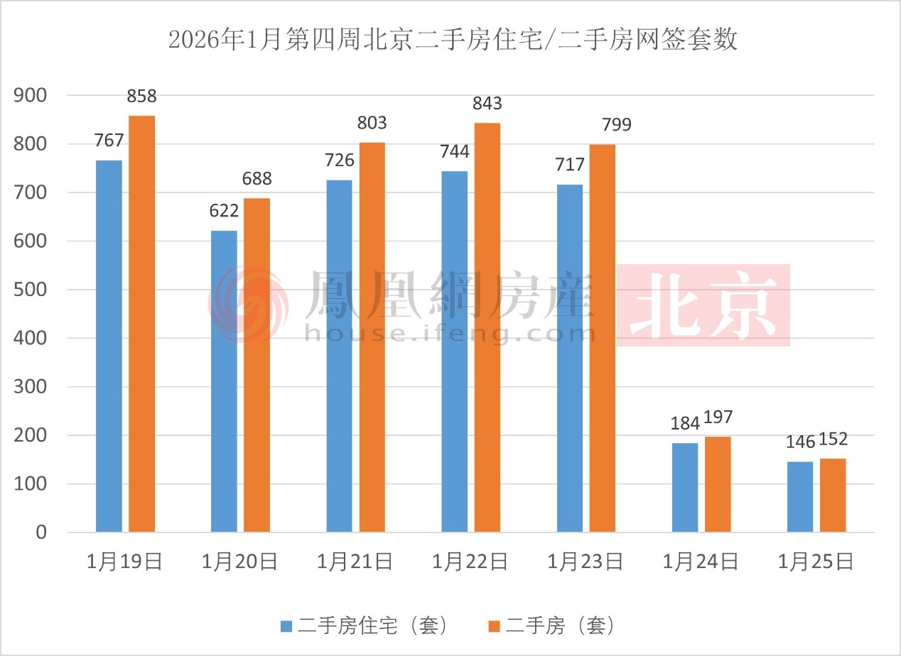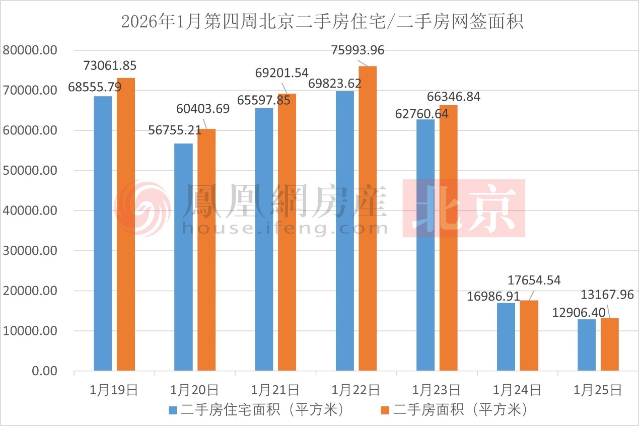 2026年1月第四周北京二手房住宅/二手房网签面积