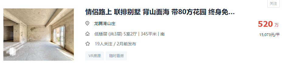 而同样位于高新区,华策集团2006年开发,2008年交付的龙腾湾山庄,也有2套别墅、1套复式住宅被摆上法拍货架。
