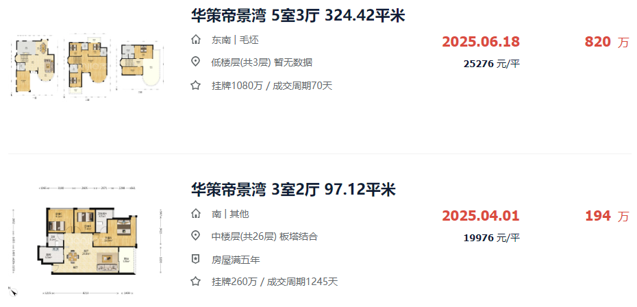 目前,华策帝景湾二手房成交单价约1.9-2.5万元/㎡。
