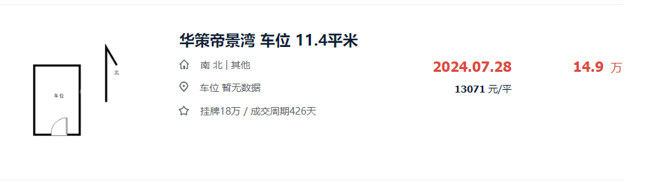 而目前该社区车位最新成交价为14.9万元,折价较小。