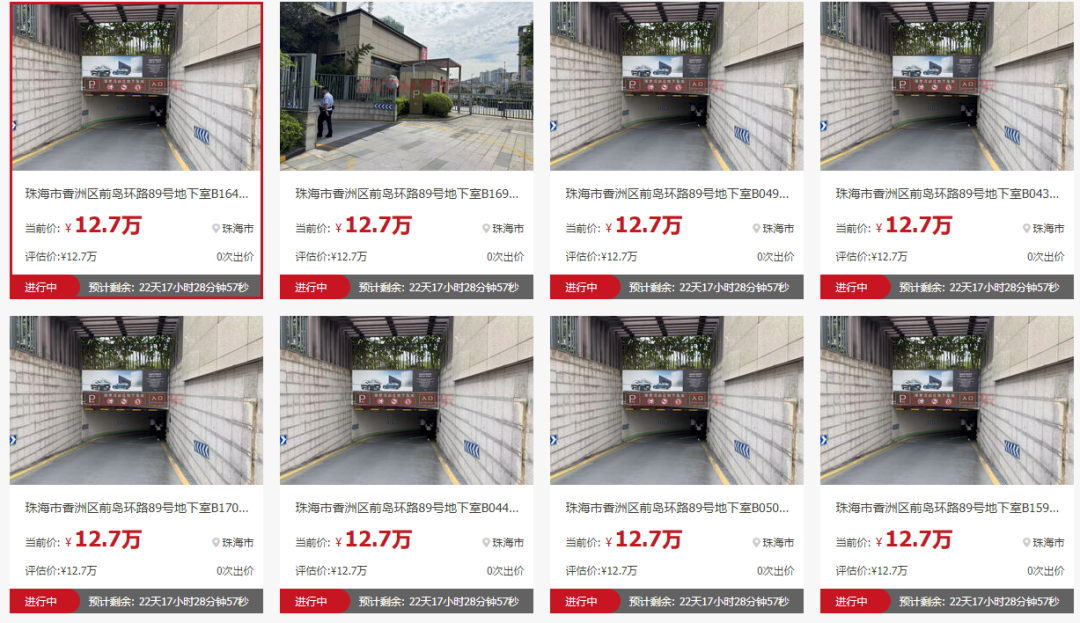 117个地下车位,每个起拍价12.7万元,面积约8.97-12.25㎡。