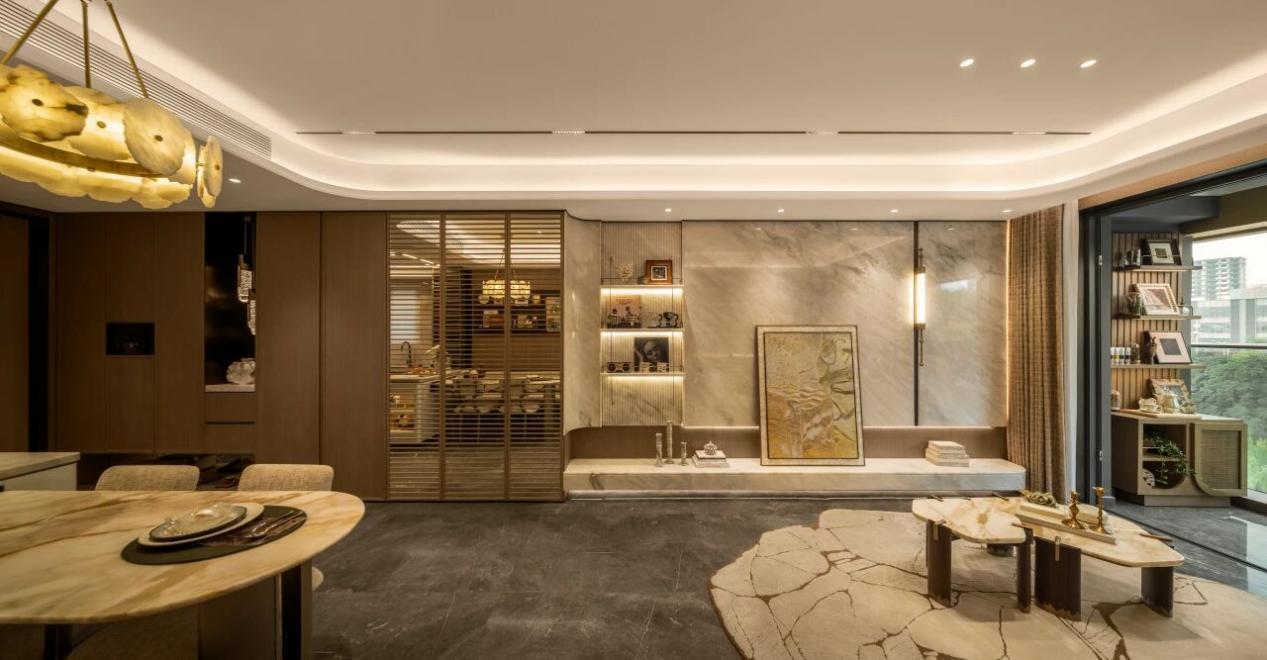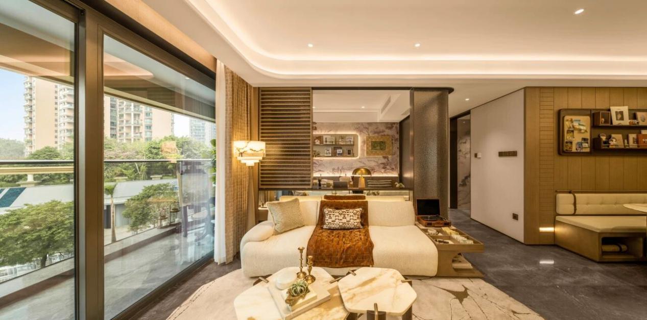 约127㎡户型则以阔绰尺度营造大家气象,南向宽厅衔接景观阳台,引园景入室;多套房配置满足多代同堂的温情需求,独立家政间与洄游动线提升生活效率。全屋奢装甄选质感材质与前沿工艺,皆以高标打磨,让品质力不止于观感,更融于可触摸的日常温度,重新定义深圳低密奢居的品质想象。
