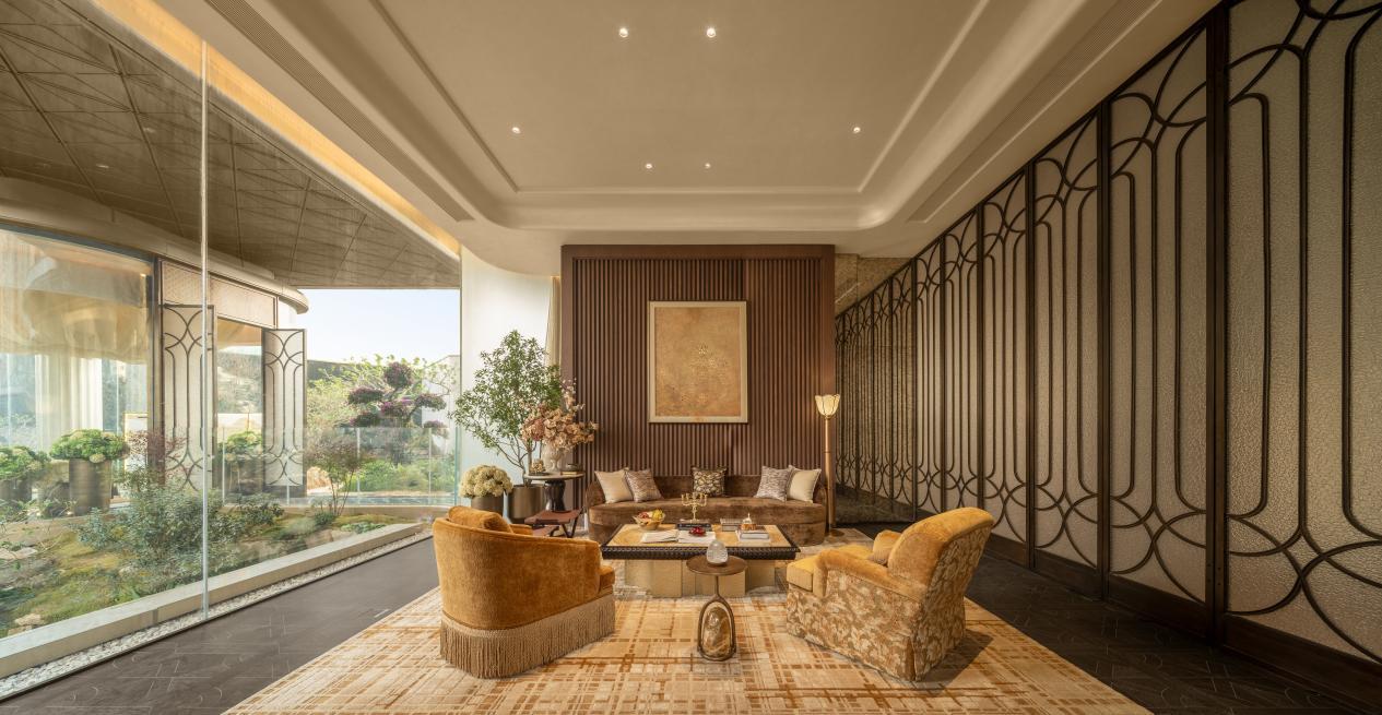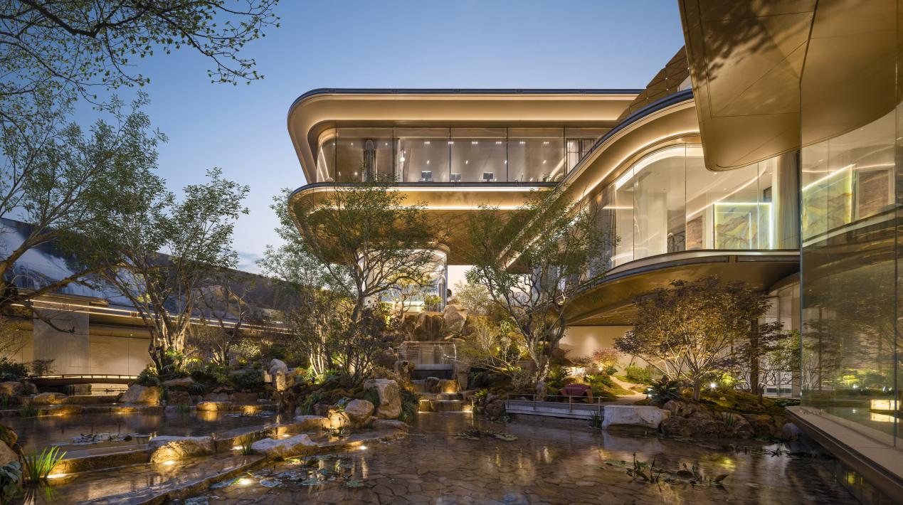 约15米高差的四层园林,匠心收纳山、林、谷、泉意境,层层递进的立体景观宛如一幅可游可赏的山水长卷,将山川湖海垂直排布,营造松弛身心的游园体验。