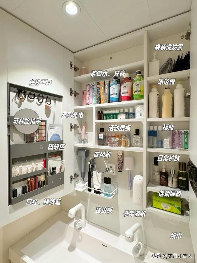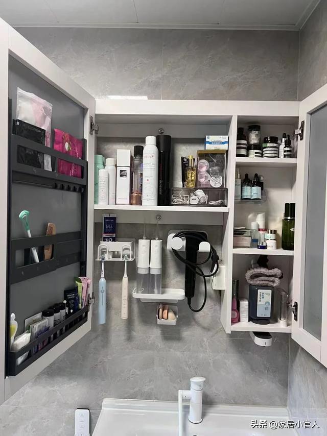 不然乱糟糟的洗漱用品堆积在台面,也会让我们的卫生间,看起来更加的脏乱差,细菌也会随之而滋生。