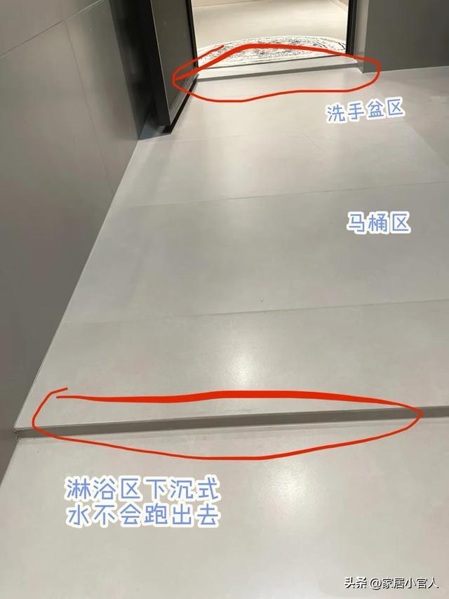 同时下沉式的门槛,还可以防止卫生间在洗澡时水渍蔓延到客厅,真真正正的好设计,符合日常生活的使用。