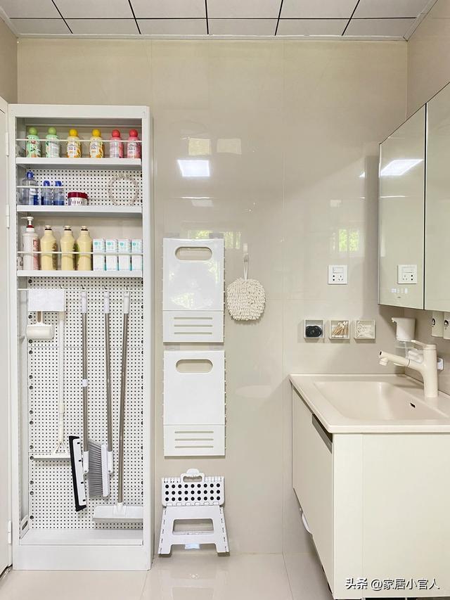 最重要的是,在卫生间门后收纳,还可以方便清洁之后的拖布沥水,水渍会直接顺着地面流入下水道中,不影响第2次的使用,干净又方便。
