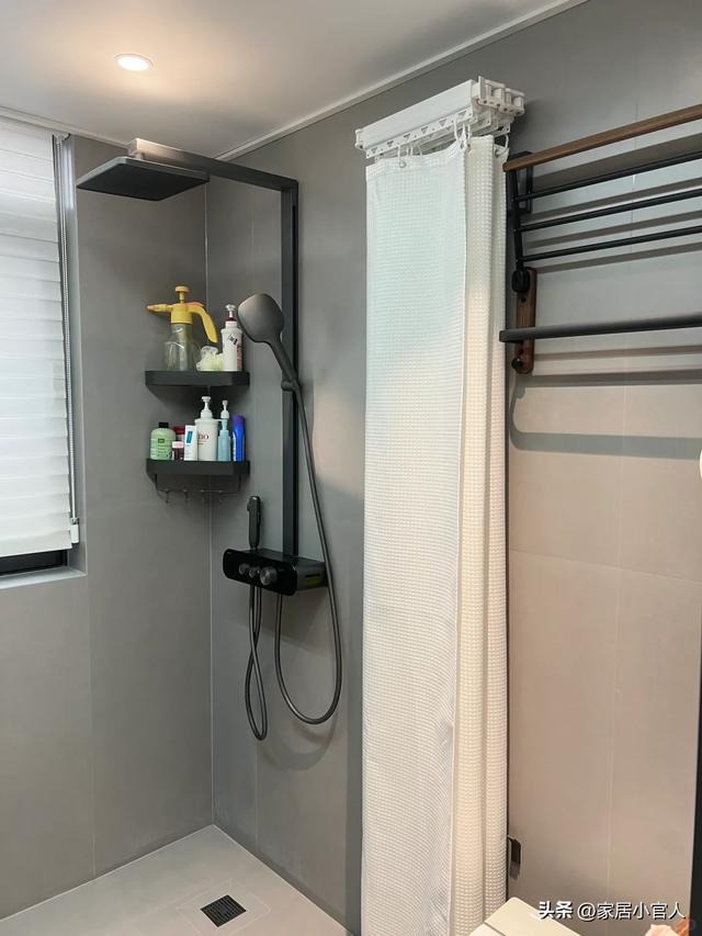 不如选择用几十元的浴帘,作为干湿分离的隔断,既能满足于你对干湿分离的要求,同时在日常的生活中打扫更为方便。