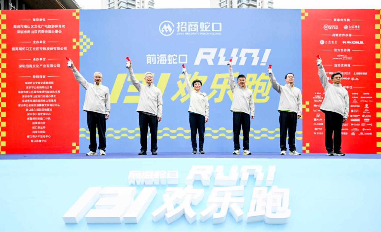 1月31日早晨8时,深圳太子湾花园城晨光熹微,招商蛇口举办的2026前海蛇口131欢乐跑鸣笛开跑。