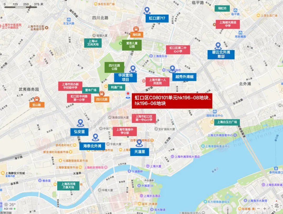 该地块位于四川北路板块,紧邻北外滩与瑞虹新城,距离10号线四川北路站仅约300米,周边商业、教育、医疗配套成熟。西侧的乍浦路承载着深厚的历史文化记忆,周边分布着胜利电影院、今潮8弄等文化地标,同时也是电影《酱园弄》的取景地之一。