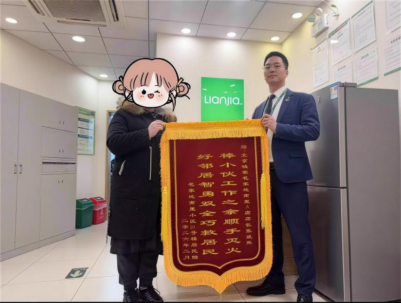 “当时火苗已经起来了,多亏了链家的小伙子反应快、敢上前,不然火势蔓延开来,后果不堪设想。”事发后,花家地南里小区10号楼的一位业主,在小区业主群里详细复述了张威振挺身而出、应急处置火情的全过程,字里行间满是感谢。消息在业主群传开后,引发了众多业主的共鸣,大家纷纷为张威振的勇敢点赞,随后自发组织起来,定制了锦旗送到了张威振所在的链家门店,以此表达对他守护社区、守护居民安全的谢意。