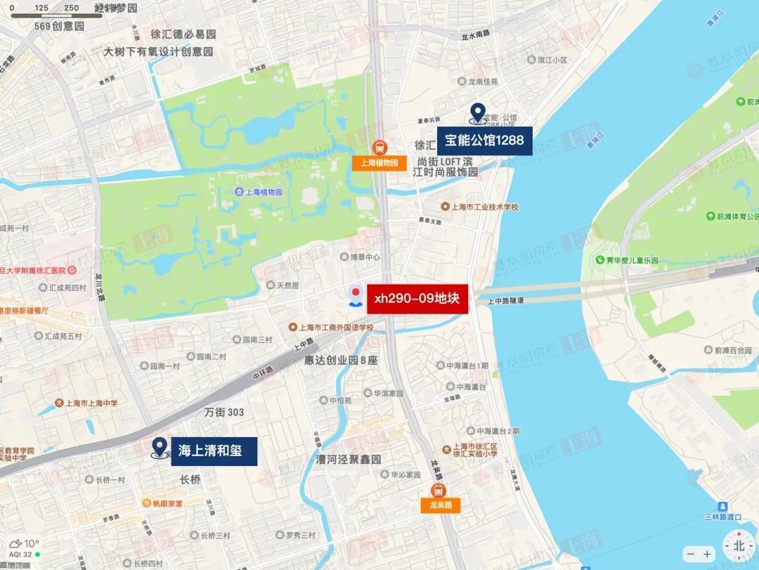 从区位上看,地块坐落于内中环之间,紧邻龙吴路与中环线,距离在建轨交23号线上海植物园站直线仅约600米,未来轨道交通出行便利。此外,地块北侧距上海植物园约300米,东侧离黄浦江岸线直线距离仅约500米,坐拥难得的城市绿肺与滨江景观资源。
