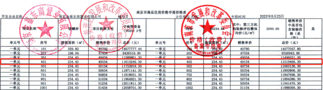 南京网房数据显示,当年这套房源开盘时,单价在4.9万元/㎡左右,总价在1150-1160万左右。