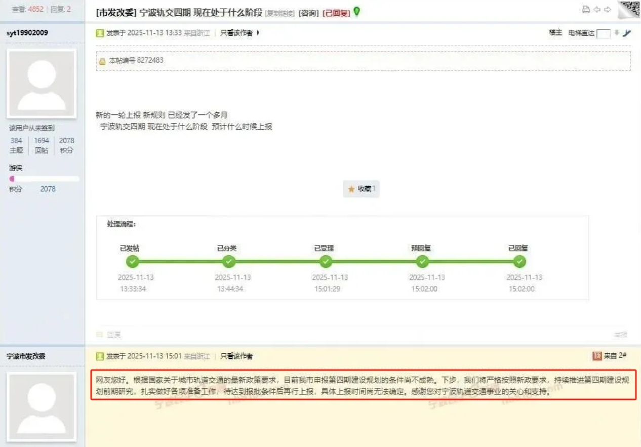 如,宁波在2025年完成轨道交通三期全部项目,运营里程突破300公里,但在申报四期规划时,被明确告知“客流强度有待提升,暂不具备申报条件”。