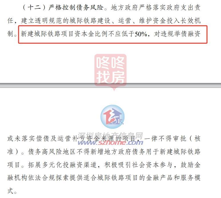 新建城际铁路项目资本金比例不应低于50%,对违规举债融资或未落实偿债及运营补亏资金来源的项目,一律不得审批(核 准)。