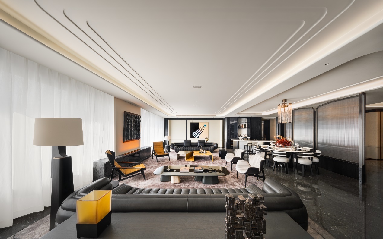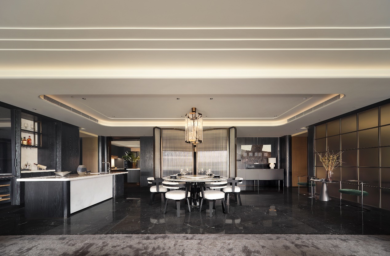 恒基・天汇楼王样板间特邀CCD匠心打造,遵循中式中轴对称精髓,将核心筒北移,令室内空间极度规整,利用率达到最优。同时参照四合院理念打造洄游动线,让家庭成员既能相聚一堂共享天伦之乐,又能拥有各自独立的私密空间,在团聚与独处之间找到完美平衡。