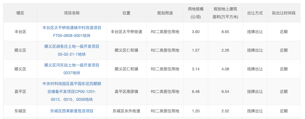 北京发布今年第一轮拟供商品住宅用地清单,共5宗16公顷