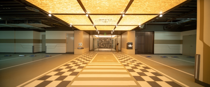 高约11.5米、宽约34m酒店式归家大堂,通过舒展的飞檐,延续宋代“簪花披红”的及第礼制,搭配“金镶玉”,彰显尊崇归家礼序。