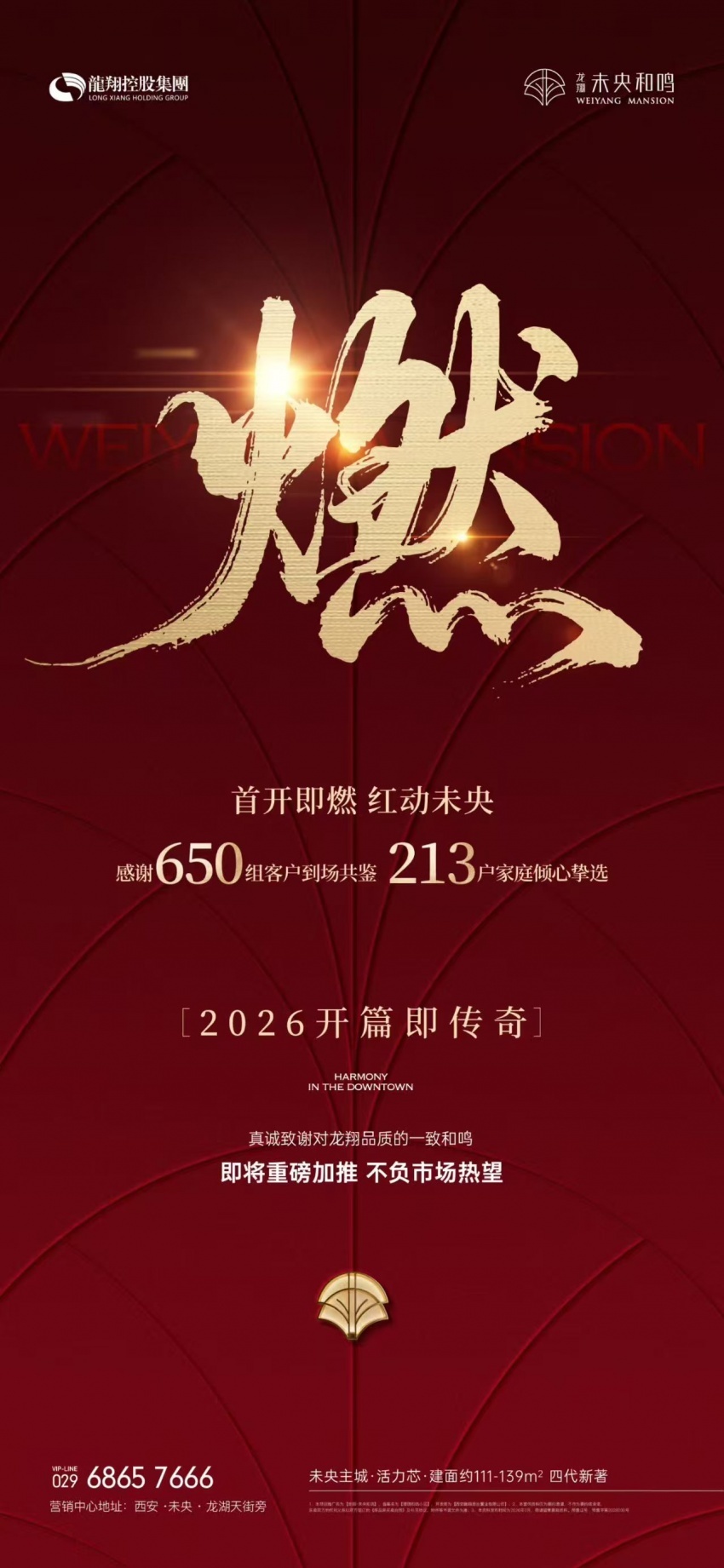2月9日首开盛典,龙翔·未央和鸣更以“650组到场,213户成交”的傲人佳绩惊艳市场,现场热销盛况空前,这无疑印证了市场对这款“时代之作”的高度认可与热烈追捧。据悉,项目即将重磅加推,对于追求高品质生活的改善型购房者而言,龙翔·未央和鸣无疑是进驻未央核芯“不容错过”的置业良机!