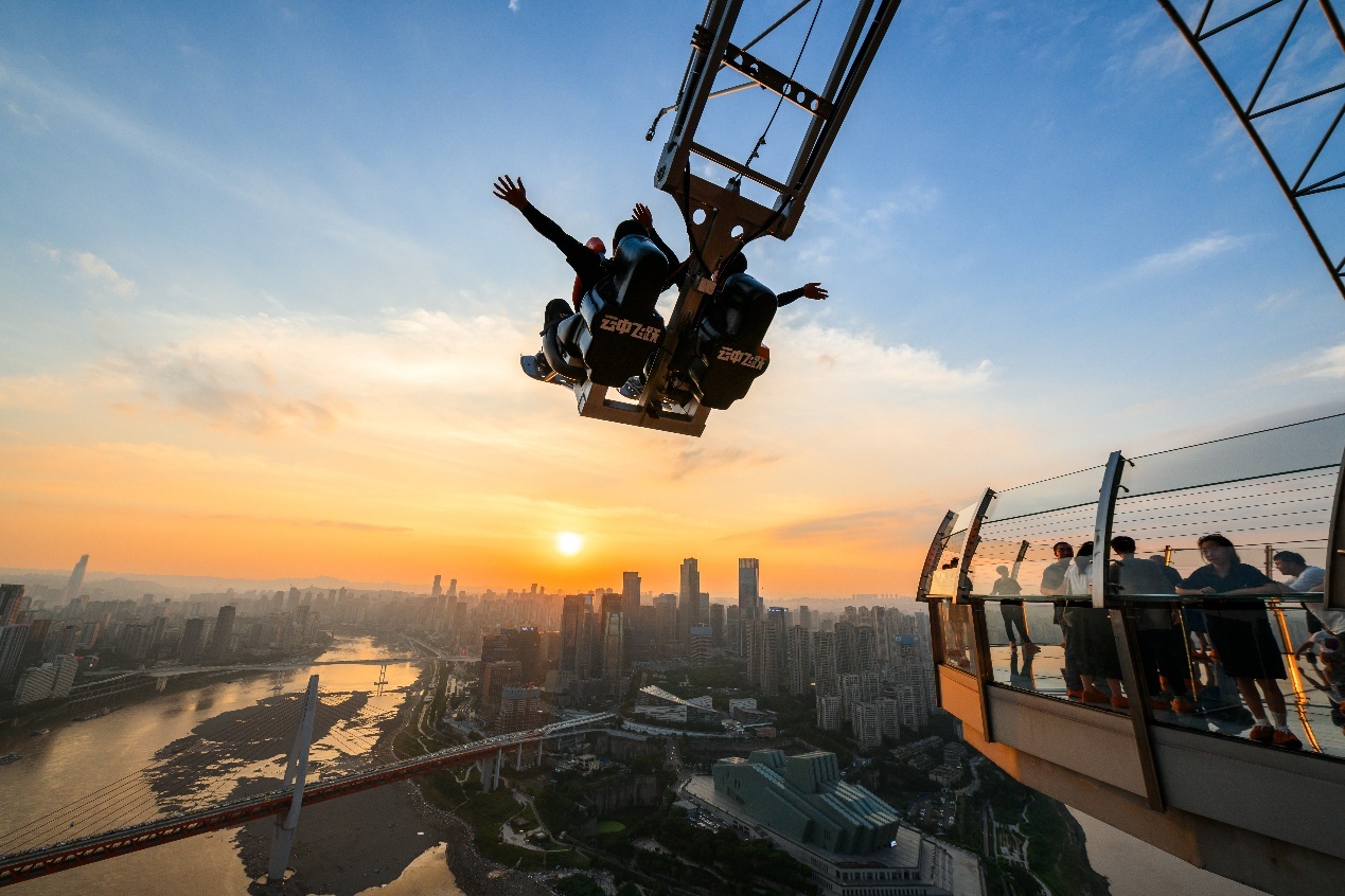 探索舱·云端乐园,作为西南唯一世界高塔联盟成员和重庆必玩高空项目,已有独家四大高空体验——露天全玻璃观景平台“天空之境”、 全球唯一横向摩天楼380米环形天际步道“云中漫步”、国内首个城市高空双人江景秋千“云中飞跃”、重庆首个机械臂MR过山车“天空旅行者”。