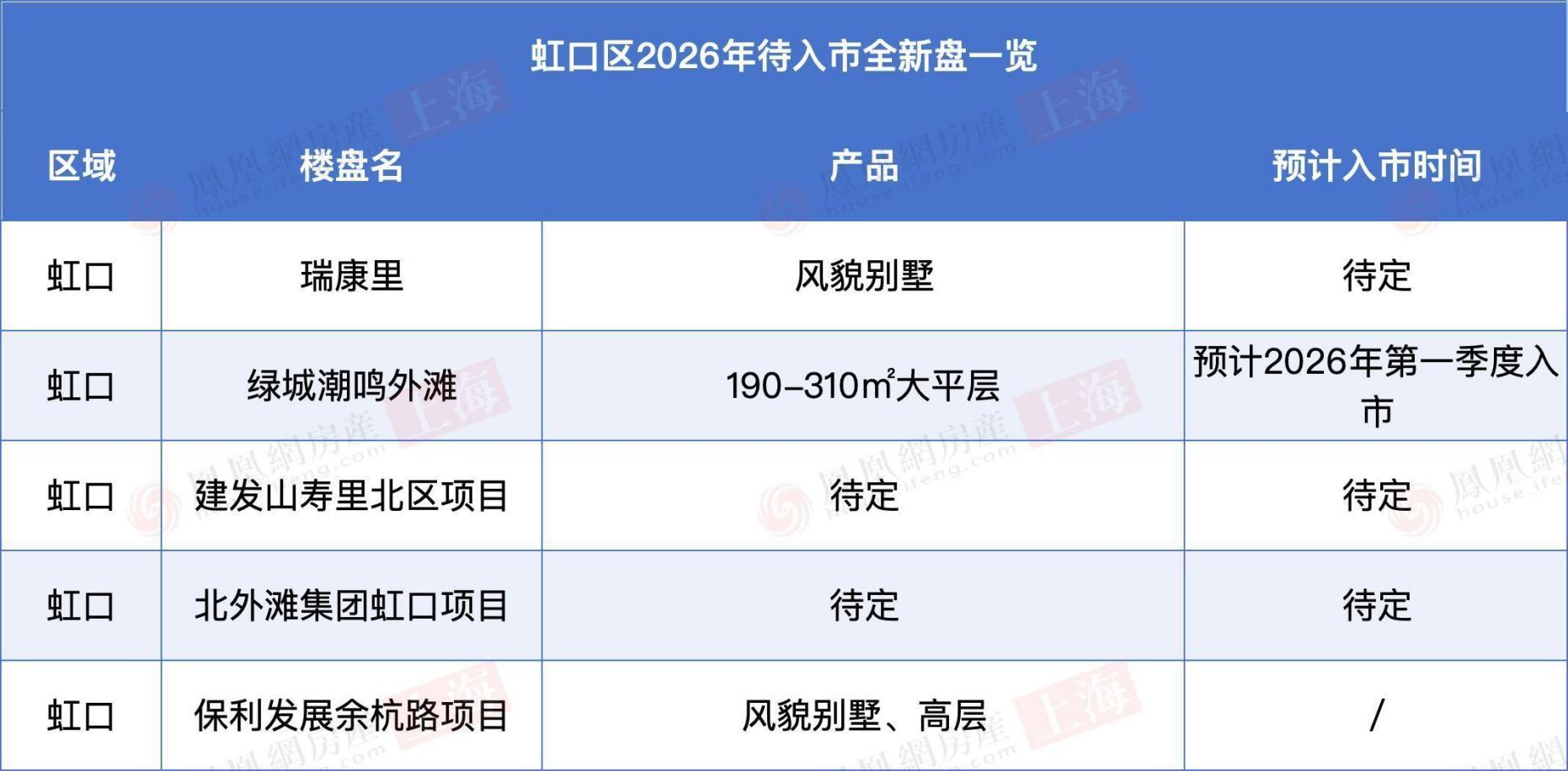 建发山寿里北区项目、北外滩集团虹口项目详情尚未公布。