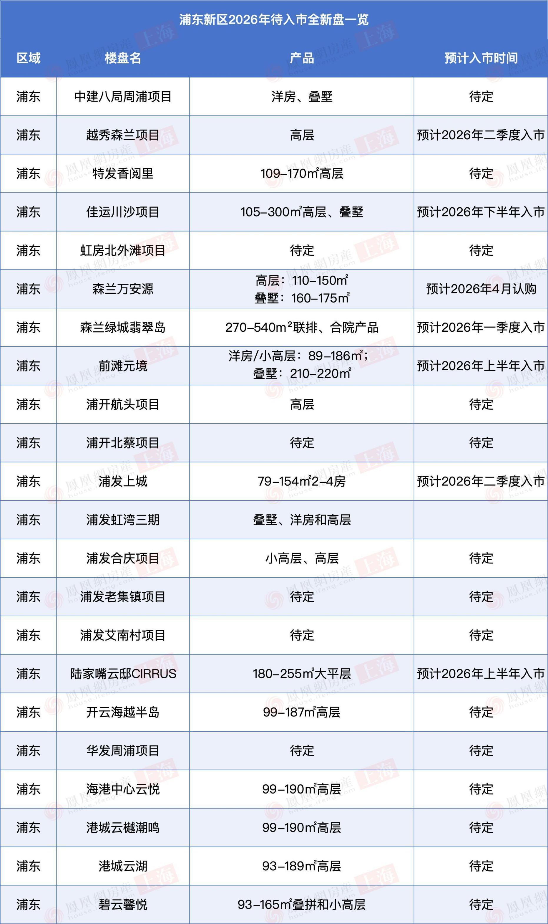 浦东是2026年的供应主力区域,新盘遍布前滩、森兰、周浦、航头、北蔡等多个板块,产品类型极为多元。