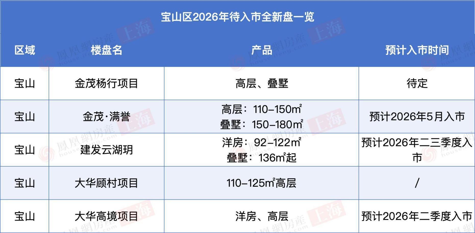 金茂杨行项目、大华顾村项目、大华高境项目也将陆续供应。