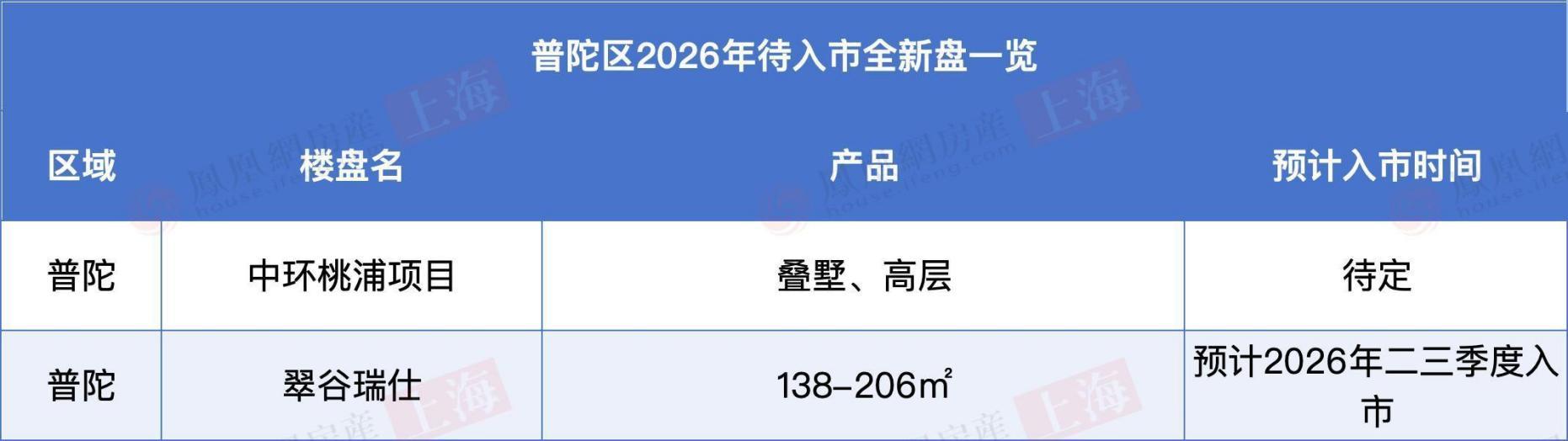 普陀区2026年新盘数量较少,共有2个,分别位于桃浦和真如。