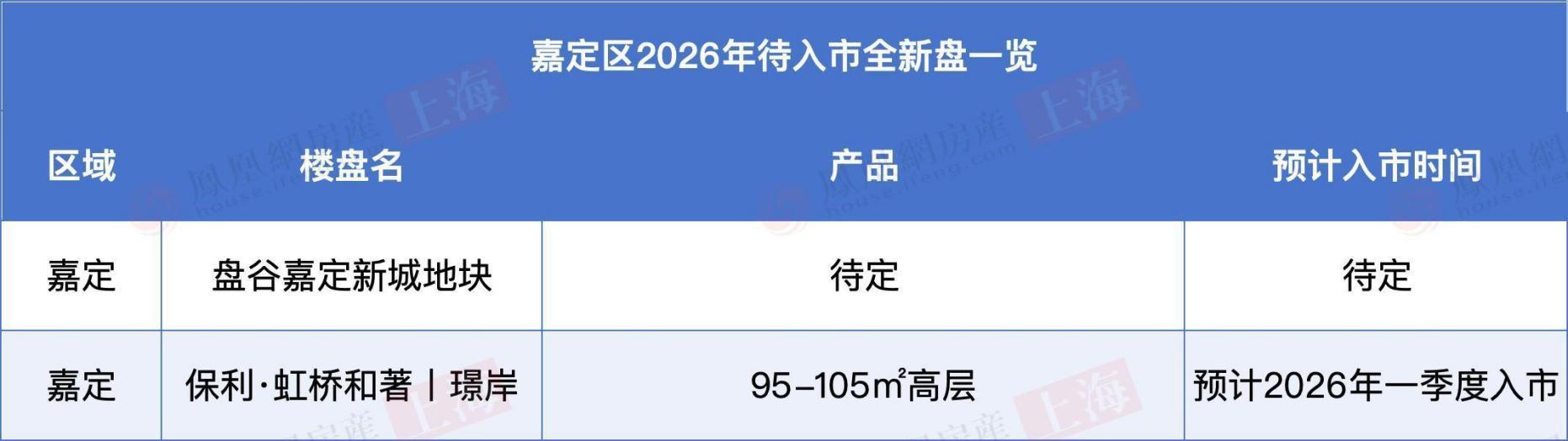 嘉定区2026年新盘数量较少,共2个,分布于新城和江桥。