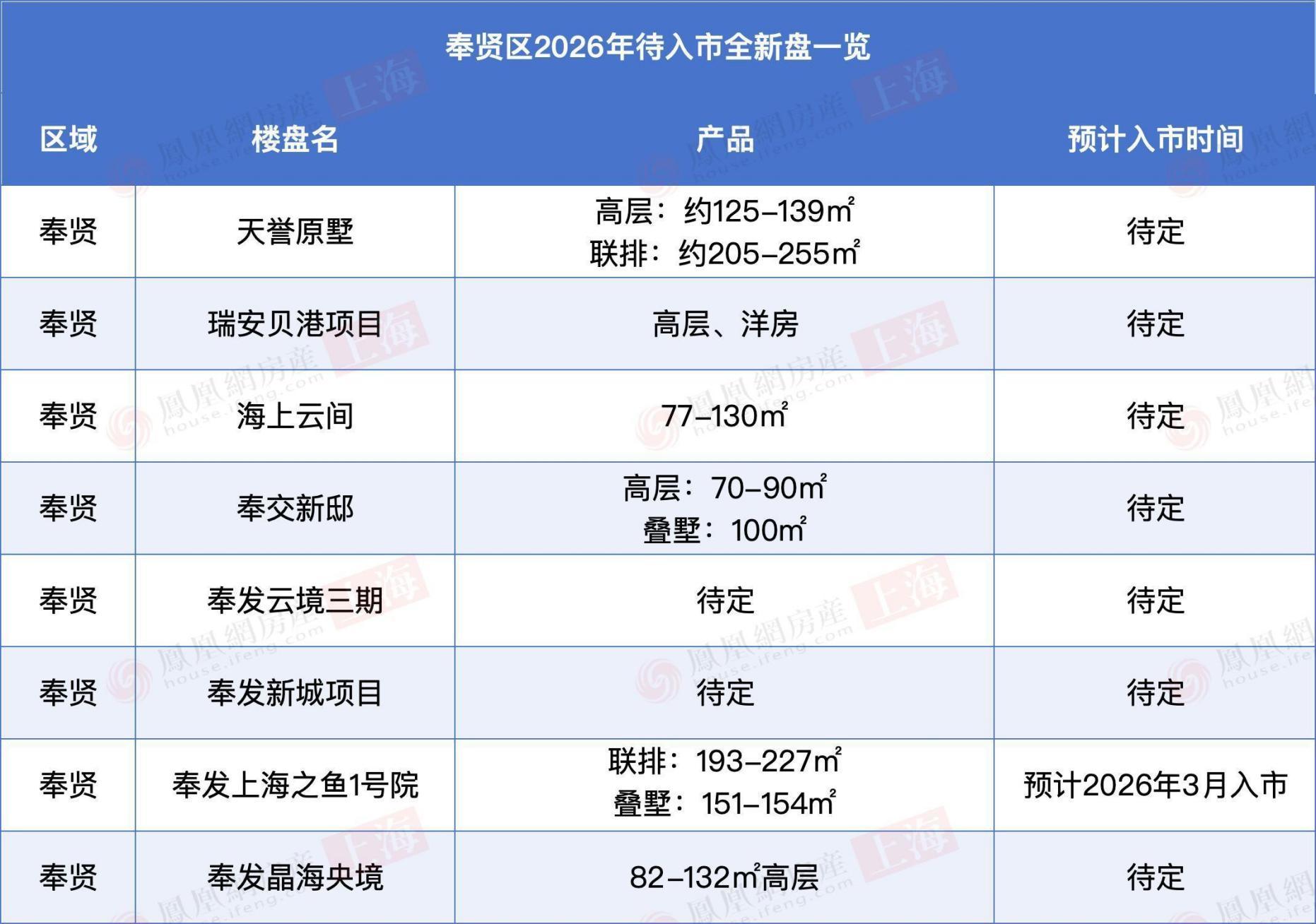 奉发上海之鱼1号院:规划联排(193-227㎡)、叠墅(151-154㎡)及高层(107-137㎡),预计2026年3月入市。