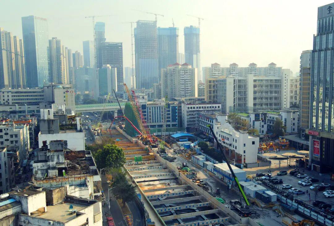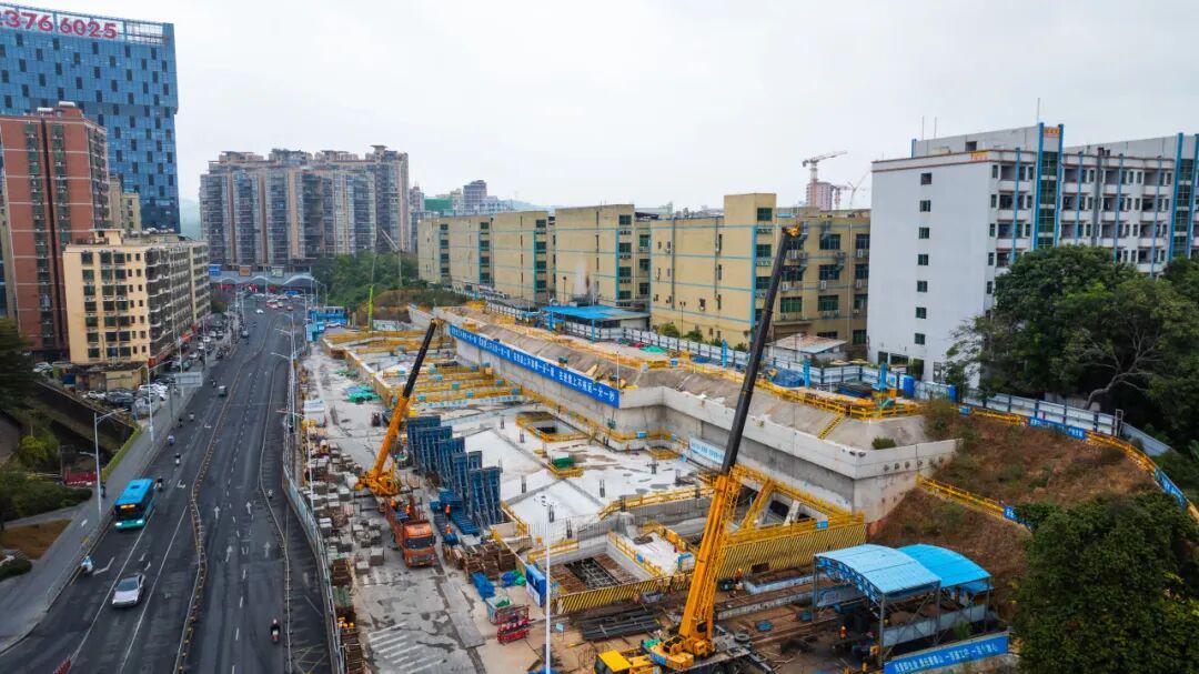 龙华公园站-龙华站区间明挖段为单层箱型框架结构,全长105.6米,基坑最深达19.3米,不仅是区间右线的关键通道,更兼具龙华站前停车线的重要功能。