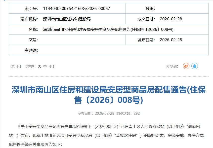 本次配售实行集中认购、分队列摇号排序选房。有意申购的家庭需在 2026年2月28日18:00至2026年3月11日18:00期间,登录深圳市住房和建设局官方网站进行线上认购申请,逾期不予受理。