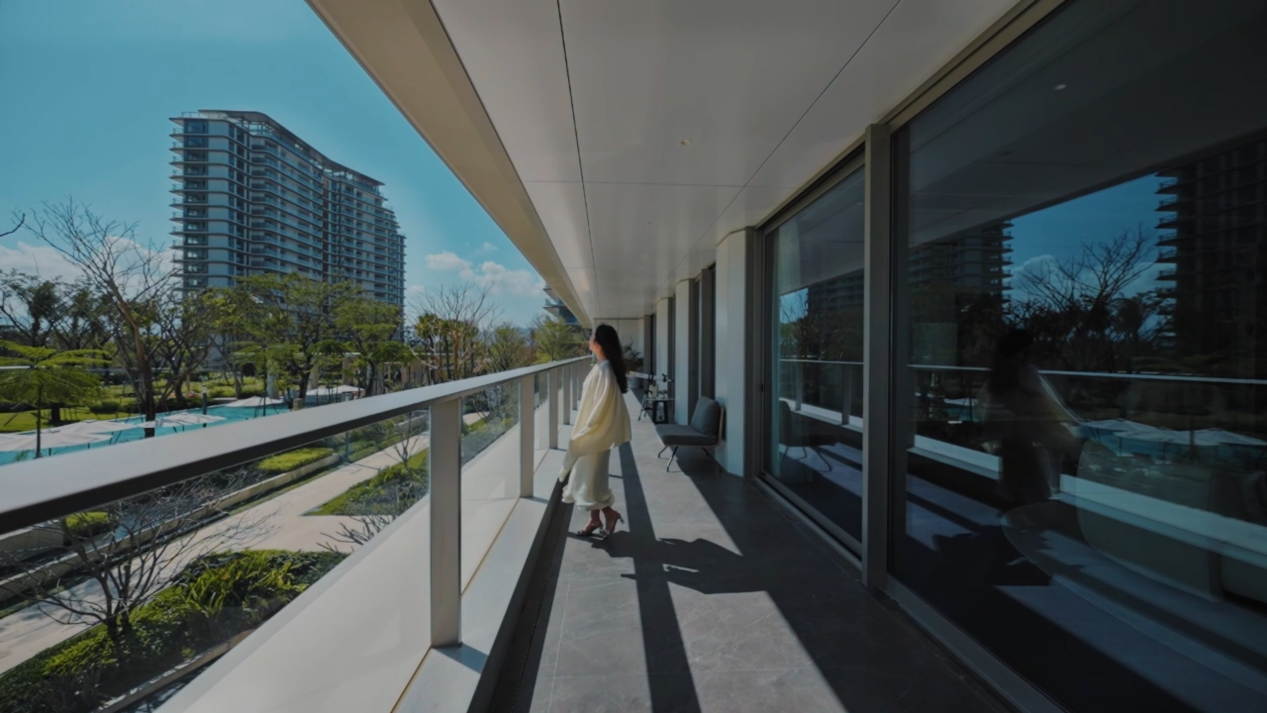 全系标配一梯一户专属礼遇,独立入户玄关保障私密尊崇,约 3.2-4.3 米轩敞层高拓展生活维度,约 2.4 米悬挑环幕跑道式阳台框定巨幕视野,最高达46.8米的观海长卷,更是打破传统度假宅的空间局限,将海棠湾一线地标建筑的轮廓尽收眼底。每一处 “非标级” 设计都是敢为海南先,敢于行业先,都是超级产品力的最好证言。