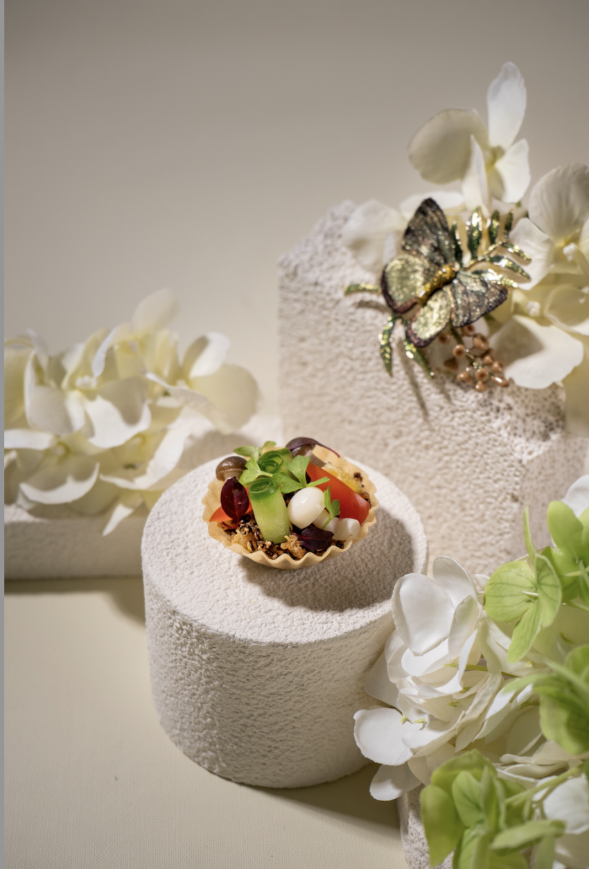 SHE'S品牌以蝴蝶为标志符号,始终致力于探索自然与艺术的融合。蝴蝶在中国传统文化中象征着美好、自由与蜕变,与当代女性在岁月中从容绽放的独特风华不谋而合。本次合作中,SHE'S的蝴蝶元素翩然融入,与酒店厨师团队的匠心创作相映成趣,共同演绎“华韵生姿”的优雅意境。