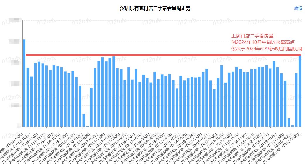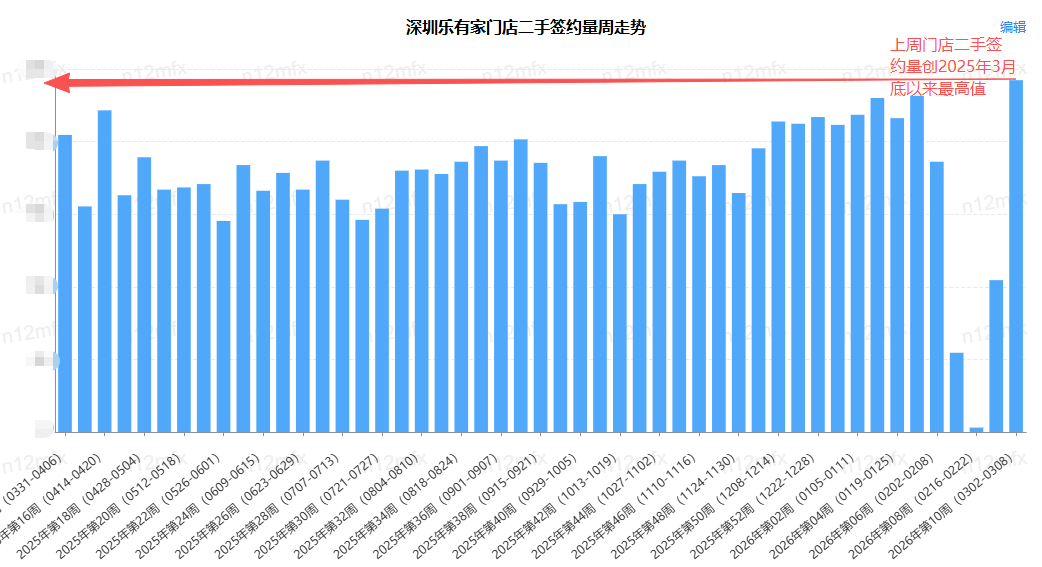 从门店数据来看,上周(3月2日至8日)乐有家门店二手签约量环比激增132%,创下自2024年3月底以来的单周新高。