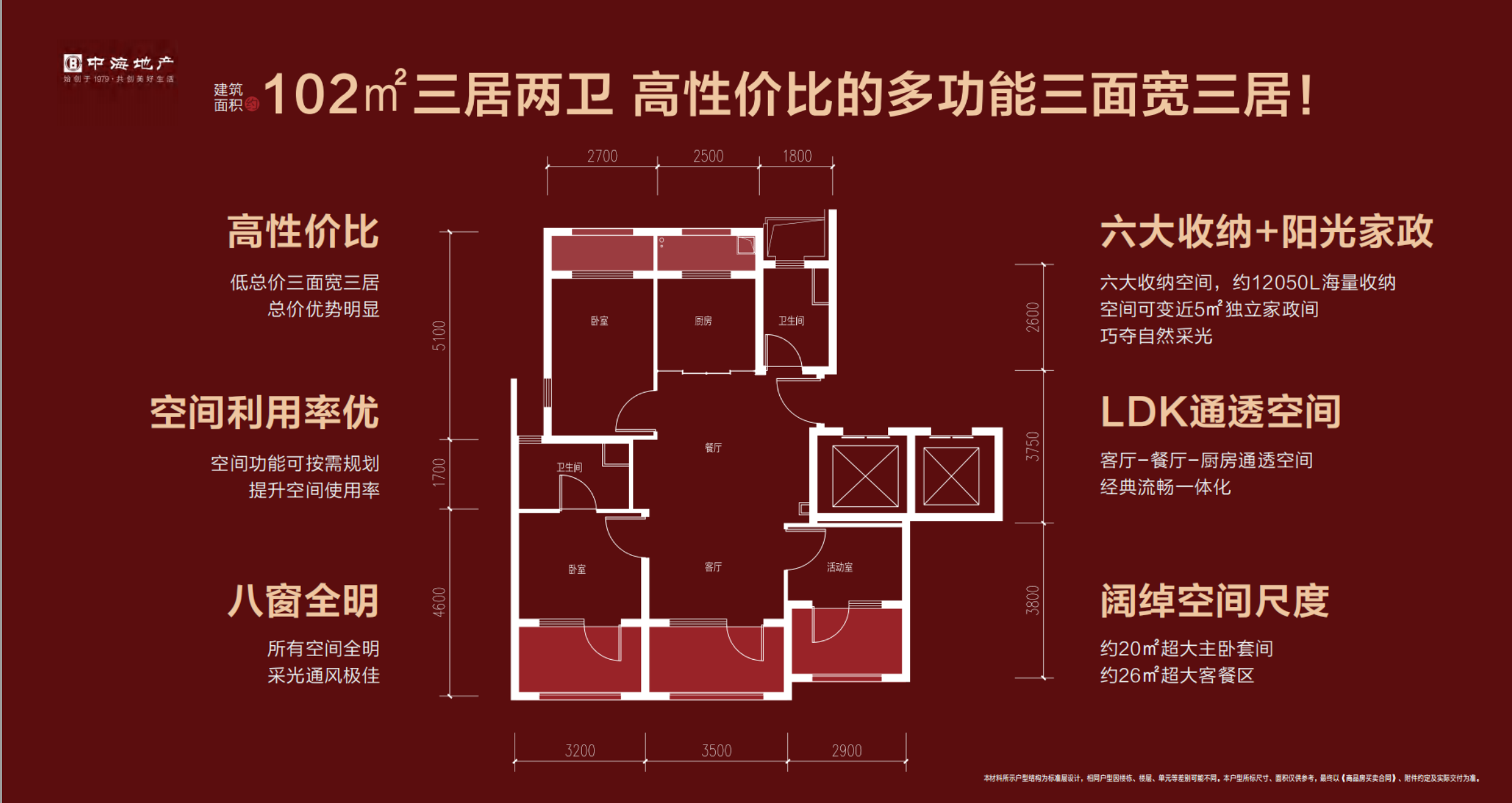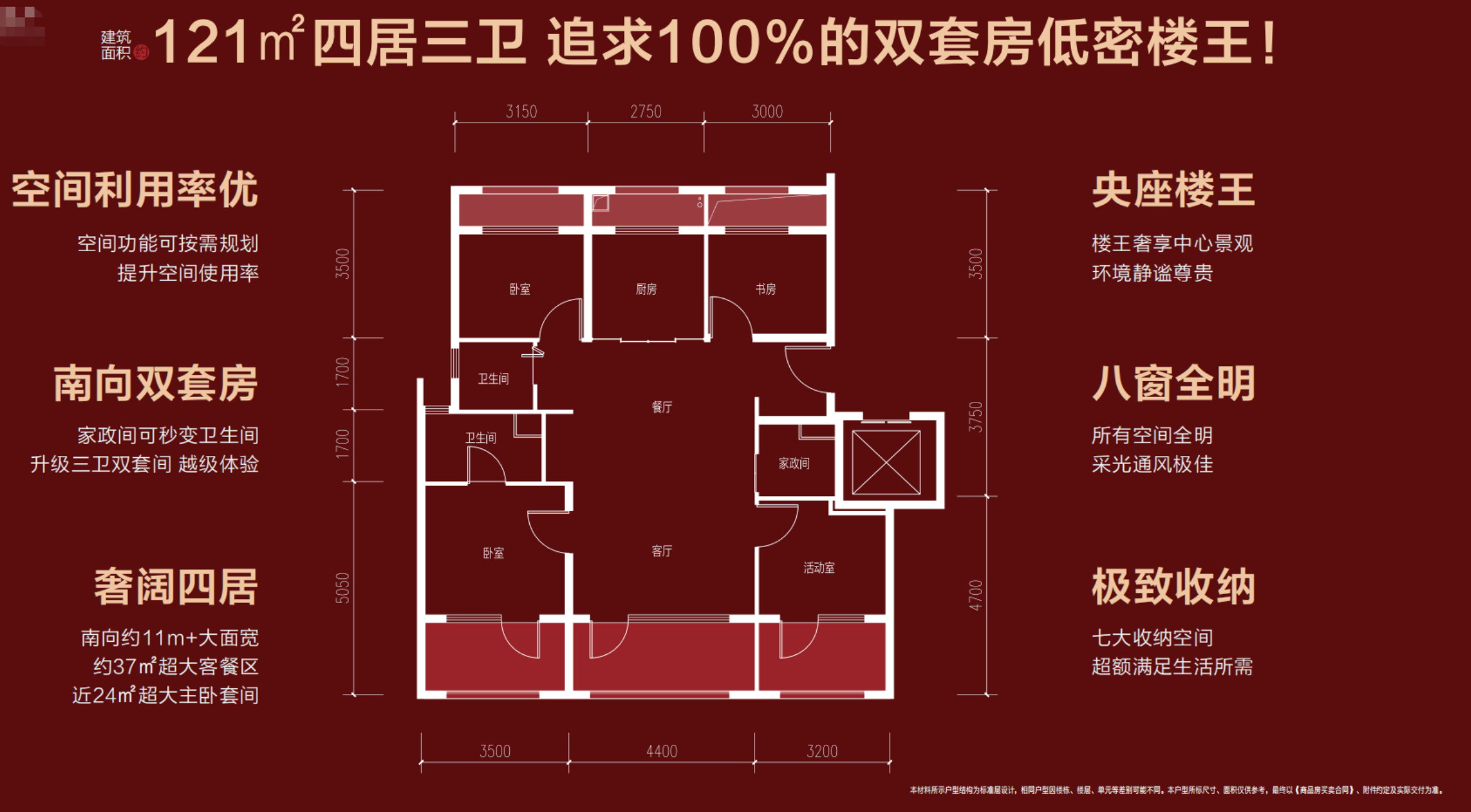 具体来看,75㎡三居一卫实得率超92%,套内约70㎡,南向7.2米面宽,带独立家政间,小面积住出大舒适。89㎡三居两卫双套房设计,102㎡三面宽三居,121㎡四叶草四居,全户型南北全明、精装交付,新风、中央空调、蒸烤一体机配齐,性价比拉满。